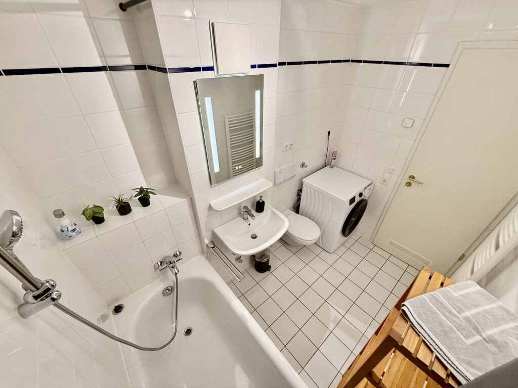 Ausstattung: Im Schlafzimmer stehen zwei Einzelbetten bereit, die bei Bedarf zu einem Doppelbett zusammengeführt werden können. Das Wohnzimmer verfügt über eine Schlafcouch, einen Esstisch, Fernseher sowie den Zugang zum Balkon, der in den ruhigen Innenhof ausgerichtet ist. Die Küche ist voll ausgestattet: Kühlschrank mit Gefrierfach, Geschirrspüler, Mikrowelle, Wasserkocher, Toaster, Kaffeemaschine sowie ein Herd – hier können Sie sich bequem selbst versorgen. Im Badezimmer finden Sie eine Badewanne, ein WC sowie eine Waschmaschine – auch Handtücher und Bettwäsche sind inklusive.