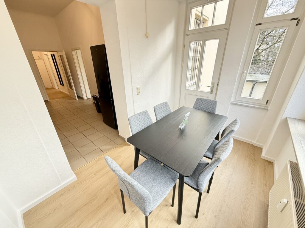 Die Ferienwohnung „HeideQuartier 6“ befindet sich in der Selliner Straße 5 im Dresdner Stadtteil Klotzsche, einer ruhigen und zugleich verkehrsgünstigen Lage im Norden der Stadt. Mit rund 105 m² Wohnfläche bietet sie Platz für bis zu sechs Gäste und eignet sich besonders für Monteure, Handwerker oder kleinere Gruppen, die beruflich in Dresden oder der Umgebung tätig sind.