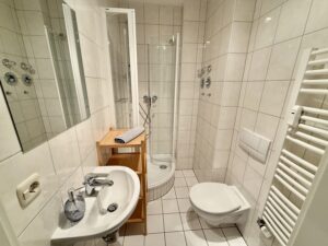 Die Wohnung liegt im Erdgeschoss und ist über das Treppenhaus erreichbar. Sie bietet mit ihrer ruhigen Lage und durchdachten Ausstattung auch für längere Aufenthalte hohen Komfort.