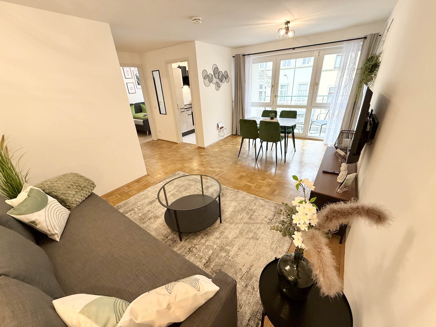 Das Apartment -Meißner Elb-Domizil 2- befindet sich im rechten Hinterhaus im Erdgeschoss und ist bequem zu Fuss erreichbar. Das Apartment ist modern eingerichtet und bietet ein offenes angenehmes Raumgefühl. Der Wohnbereich bietet ausreichen Platz für das große Doppelbett und für die dritte Person das Klappbett. Zwei Sessel mit möglichem Blick zum TV oder Richtung Elbe laden zum Entspannen ein. Auch von der Essecke hat man einen angenehmen Ausblick. Die Küche ist voll ausgestattet. Vom Wohn-/Schlafbereich gelangen Sie außerdem auf die große Terrasse mit einem angenehmen Blick Richtung Elbe und Elbhang.